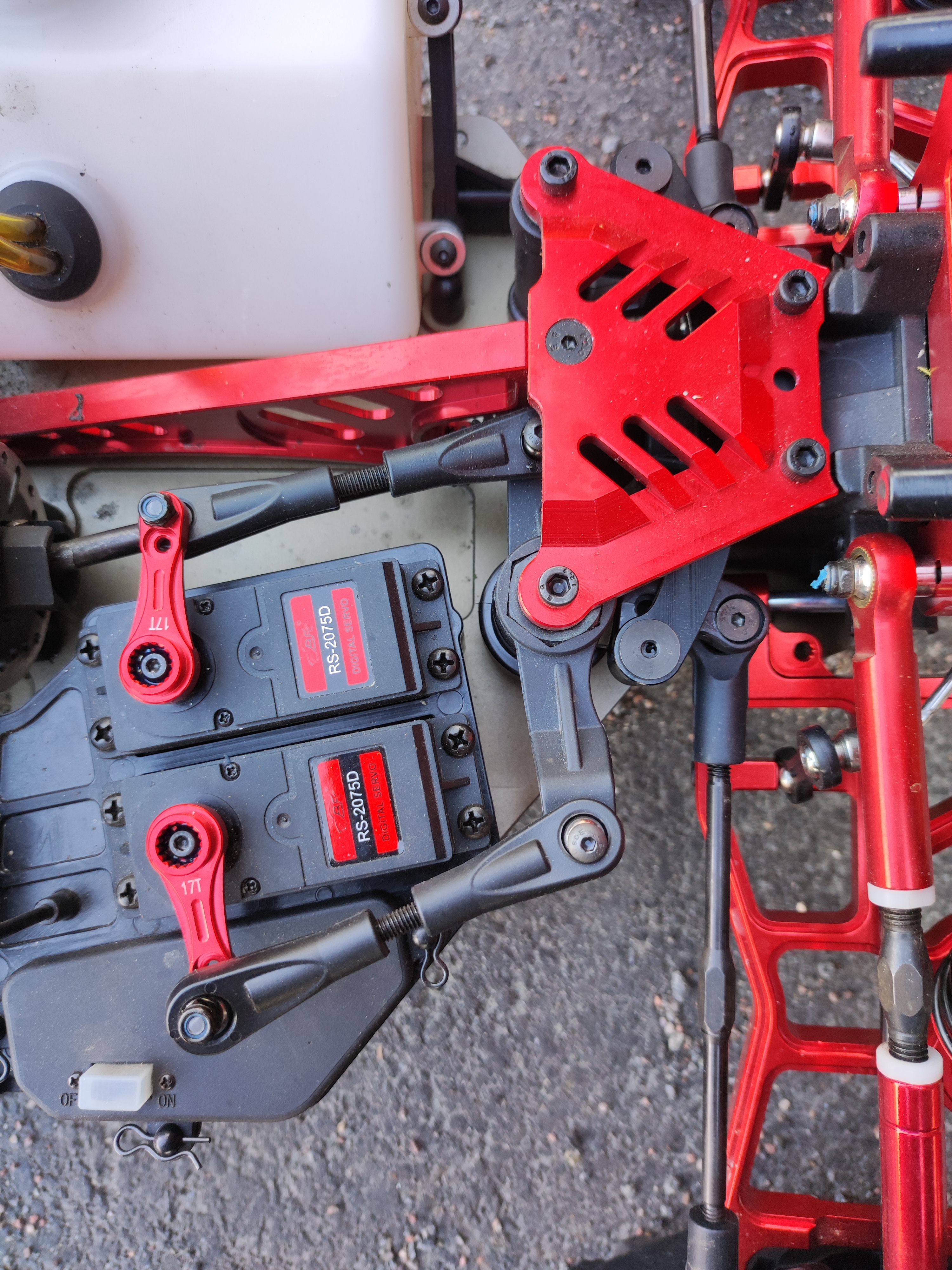 Testa att ta bort skruven till kulleden som sitter i den ena servoarmen och se hur det beter sig när du styrar.