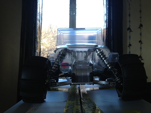 MEN detta spårade ur såklart och jag tänkte att en bil med såna här hjul ska ju vara en formula offroad jeep..... Bestämt!! En sån ska det bli. Så nu byggs det på en Jeep Wrangler kaross från FG..