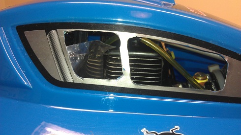 Passade även på o tog upp lite mer lufthål i karossen. Tog upp för luftfiltret fram då det låg i spänn mot karren, tog upp scoopet på taket, bakrutan och en xtra sidoruta på höger sida. Behövs det ännu fler tro? Det blir en try n error-kaross detta så haka inte upp er på de otroligt fula snitten.