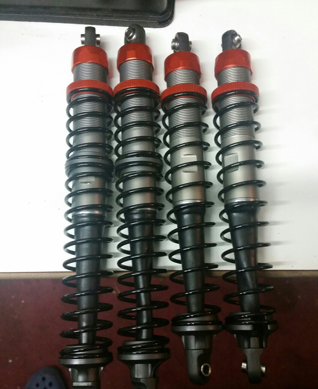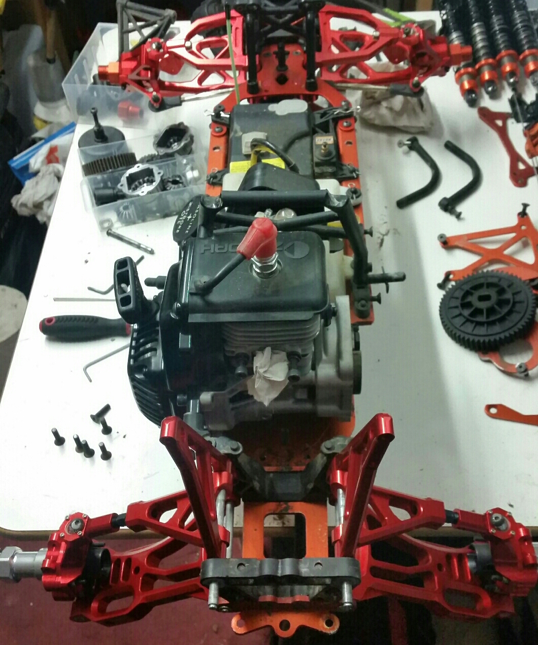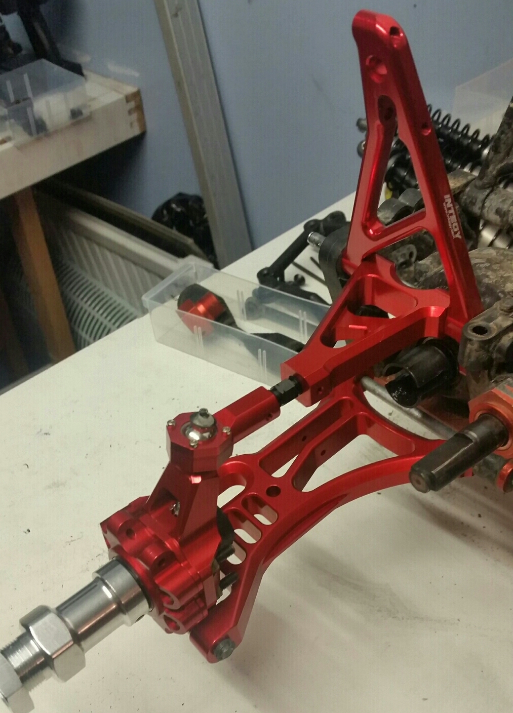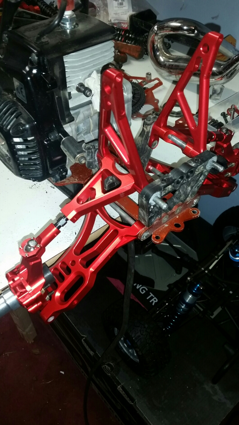 Tack gillar skarpt färgen saknar bara dämparna så är framvagnen klar hade gärna velat få tag på front mount support i alu också sen så är det dags att börja med bakvagnen så man får bort rovan från skötbordet och kan börja med losin