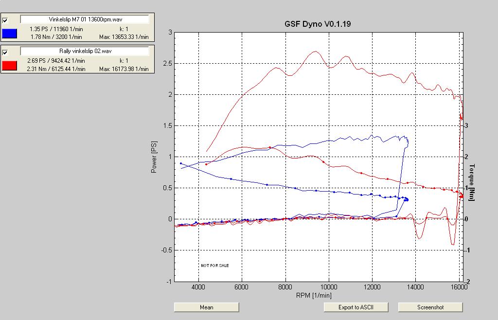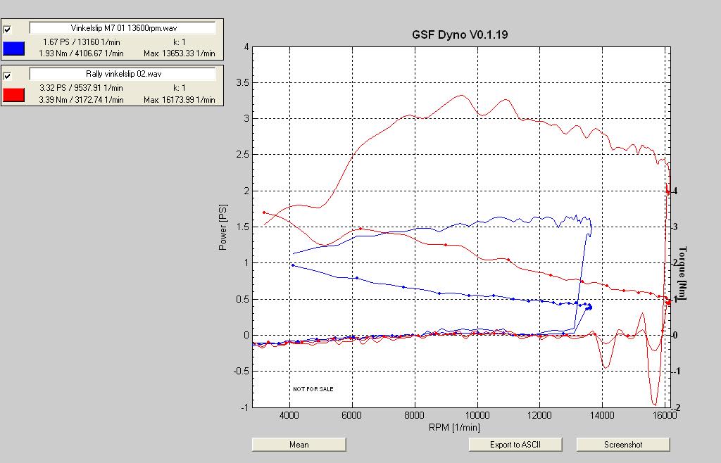 Som jag misstänkte har min bänk visat för mycket effekt och vrid tidigare, men nu har vi fått till nedrullning från 16500 rpm och korrigerat kurvorna lite......